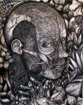 À fleur de peau1, 2014, fusain et encre de chine sur papier,16X20″